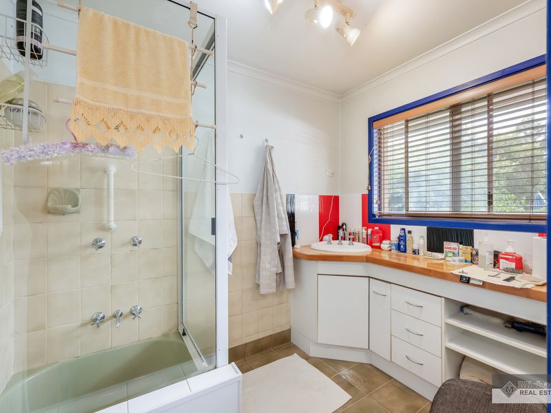 At the rear of the property, a sparkling pool awaits warm summer days, perfectly complemented by a covered outdoor area ideal for relaxing or hosting family barbecues. This home strikes a balance between the tranquillity of spacious land and the convenience of city living, situated close to schools, daycares, the Sandy Hook boat ramp, and a variety of shops, making everyday errands and outings effortlessly easy.