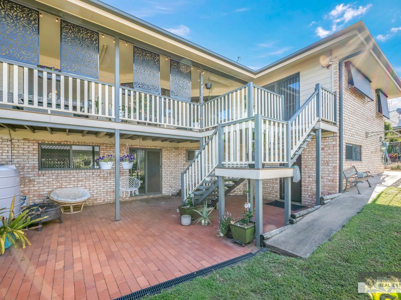 Nestled in a peaceful cul-de-sac just moments from the shoreline, this solid double-story brick residence at 17 Solander Street offers a rare opportunity to enjoy spacious family living in one of Bargara's most sought-after coastal pockets. Situated on a generous 894m² corner block, the home boasts four bedrooms, three bathrooms, and an abundance of versatile indoor and outdoor living spaces, making it ideal for a growing family or those seeking dual living.